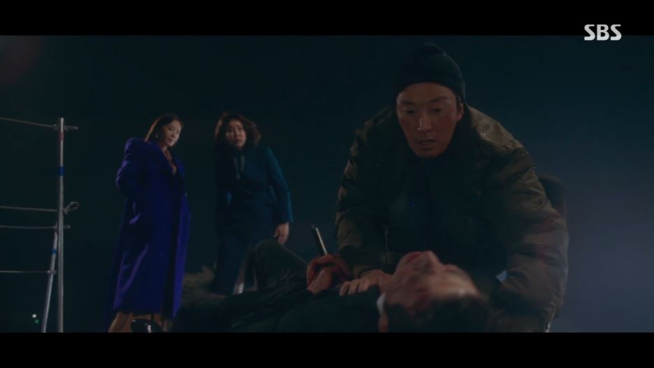 결국 기탁은 진모와 만나지 못하고 K 일당에게 붙잡혀 칼에 찔리고 맙니다. 매튜는 칼에 찔린 기탁을 그대로 물에 던져버리죠. 강기탁을 처리한 후, 매튜는 자신에게 완전히 넘어간 라희와 한 편이 됨을 자축합니다.