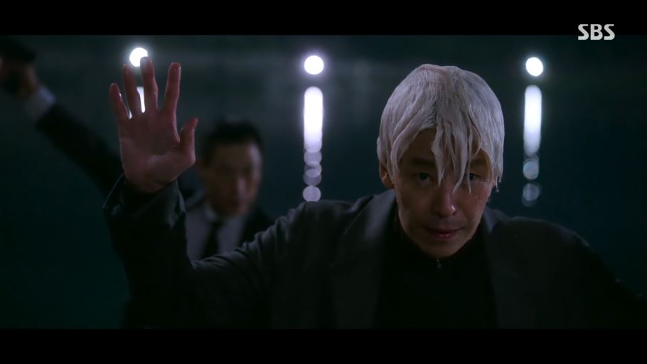 강기탁의 짐작대로 매튜는 물 안에서 자유자재로 헤엄쳐 나옵니다. 그의 모습에 기탁은 정체가 무엇인지 추궁하죠. 알고 보니 매튜는 이휘소가 아닌, 'K' 심준석이었습니다. 교도관으로 위장한 상태에서 우연히 강기탁과 이휘소의 대화를 엿들었던 심준석은 휘소를 빼내려던 방 회장의 계획을 알고 역이용했던 것이죠.