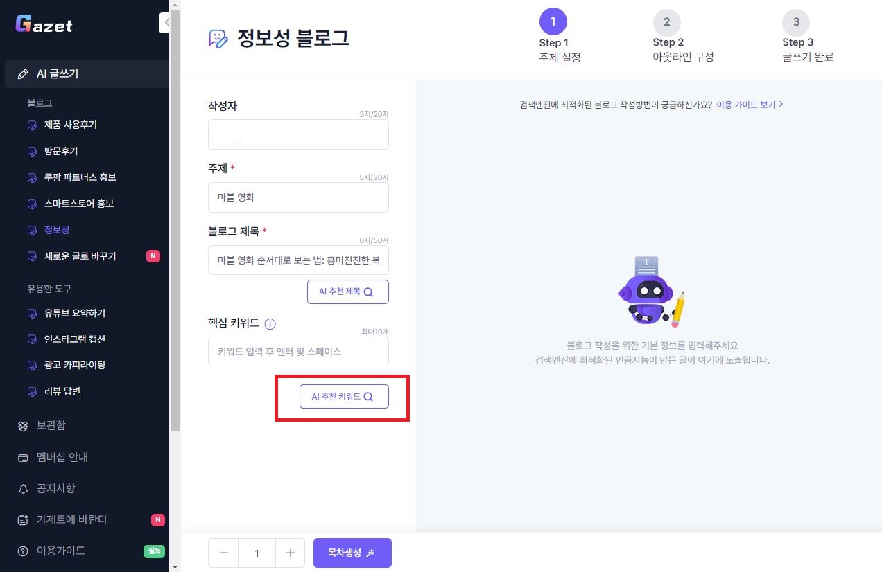 가제트 AI 글쓰기 - 정보성 블로그 사용 후기