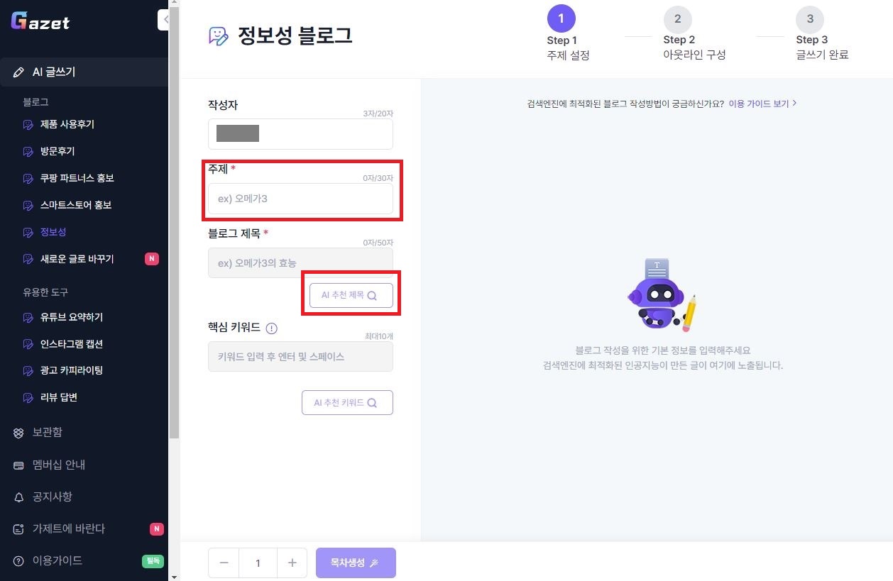 가제트 AI 글쓰기 - 정보성 블로그 사용 후기