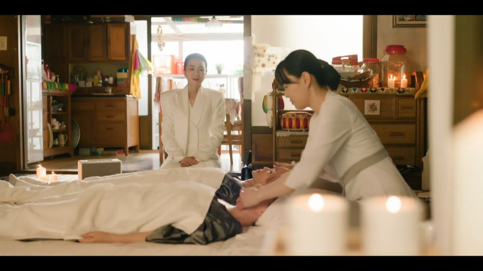 다음날 모슬희는 그레이스에게 용두리로 내려가 상황을 살펴보라고 지시합니다. 피부 관리를 핑계로 선화와 이야기를 나누던 그레이스는 해인의 수술 소식을 듣게 되죠.