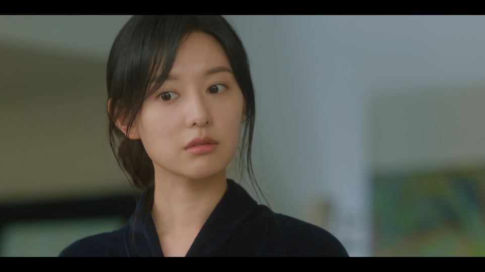 현우는 놀라면서도 일단 미선의 메시지를 빠르게 삭제합니다. 메시지를 삭제 후 나가려던 현우는 샤워를 마친 해인과 마주칩니다.