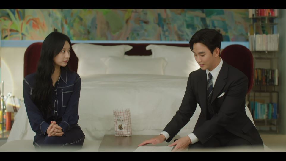 그리고 그날 밤, 해인은 현우에게 기쁜 소식이 있다며 방으로 부릅니다. 현우는 유언장 때문이라 착각해 한걸음에 달려오죠. 그러나 해인이 건넨 것은 그녀의 병을 치료할 수 있는 병원을 찾았다는 것.