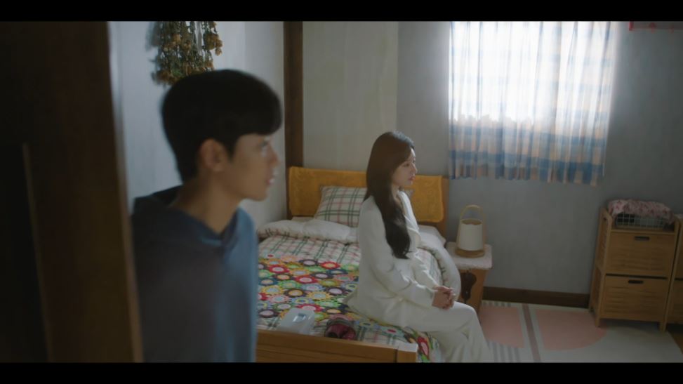그날 밤 현우는 해인과 이제부터 한 방을 쓰자고 제안합니다. 해인은 잠시 머뭇거리는 척 하지만 이내 승낙하죠. 그렇게 한 방에 있던 두 사람 사이에 어색한 분위기가 흐르고 해인은 어색함을 떨쳐 내려고 친구 이야기를 꺼냅니다.