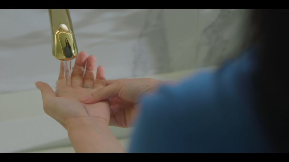 한편 잠시 화장실에서 손을 씻던 해인은 손바닥에 볼펜으로 선이 그어진 것을 발견합니다. 애써 지워보려고 하지만 잘 지워지지 않죠.