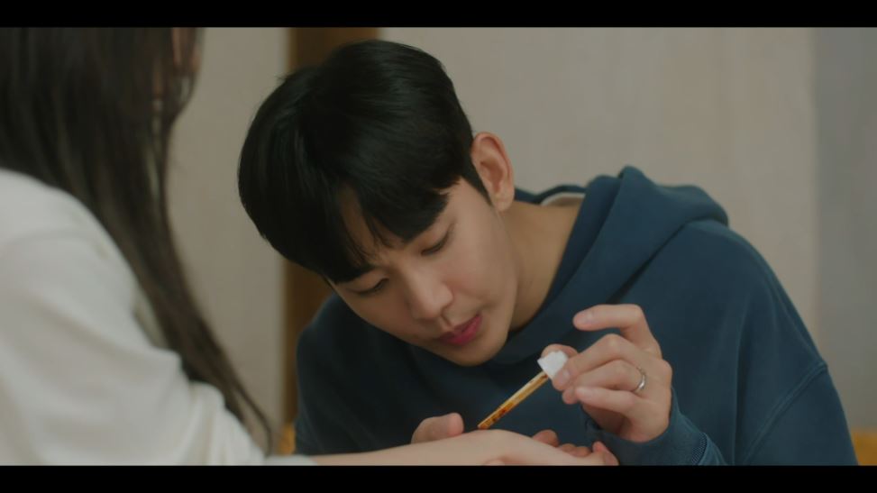 집에 도착하고 해인은 기다린 게 아니라 잠이 안온 거라며 현우에게 퉁명스럽게 굴지만 현우는 다 알겠다고 말합니다. 한참 화를 내던 해인은 자신에게 우산을 받쳐주느라 한쪽 어깨가 모두 젖어있는 현우를 발견하죠.