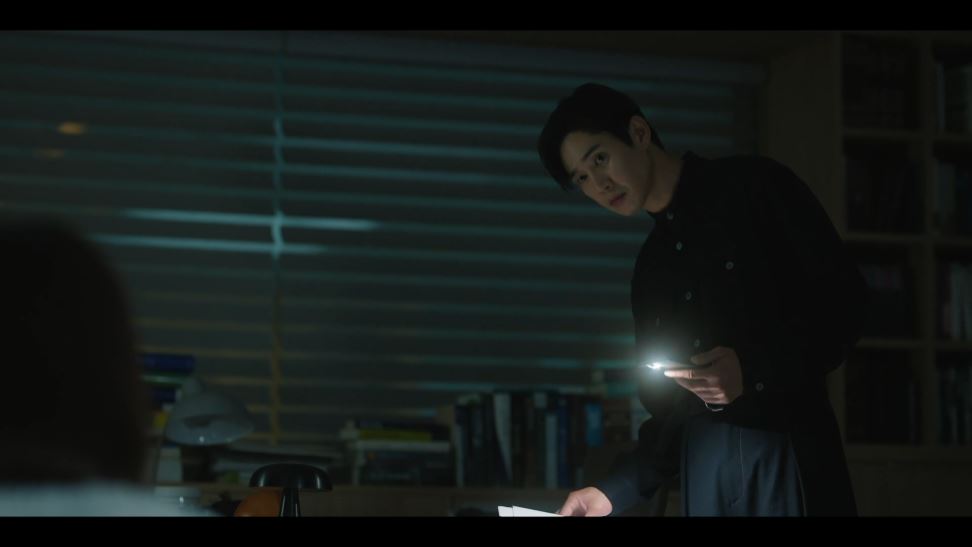 해인과 식사 후 현우는 복구 업체에 전화를 걸어보지만 이미 문을 닫은 상황. 이상함을 느낀 현우는 양기를 시켜 자신의 차 블랙박스를 조사해 달라고 말합니다. (현우는 혹시나 하는 마음에 자신의 차를 복구 업체 앞 주차장에 놔뒀던 것)